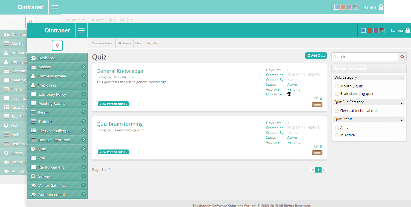 Publish Quiz, Poll & Survey to increase employee involvement in order to have their feedbacks & opinions. This is an exciting feature that has been created by one of the best intranet providers for both creator & participants an offers them a unique intranet communication software.